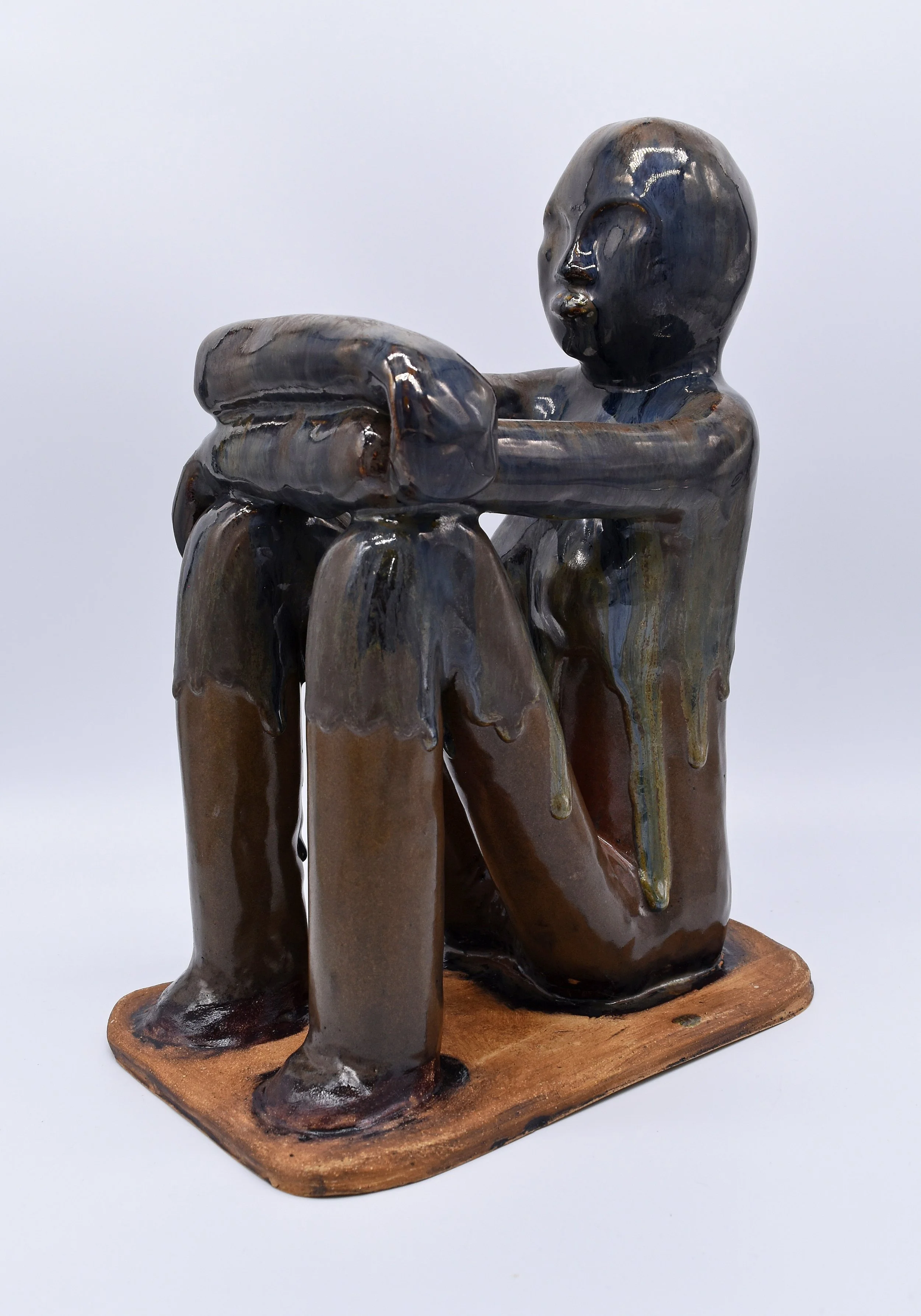 I started working in clay a couple years ago. Inspired by anitu and cycladic sculptures, I wanted to create a female form that evoked power, resistance, and rest in its gesture. I hand-modeled each sculpture and experimented in creating the ceramic glazes from scratch, using raw materials such as silica, copper carbonate and kaolin. The glazes are layered to create unique drips, volcanic textures and bronze-like saturation.